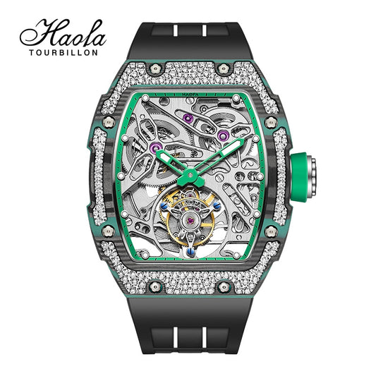HAOFA Diamond Carbon Fiber Bezel Tourbillon Watch Twin-Spring Automatic Movement Watch 1901-3