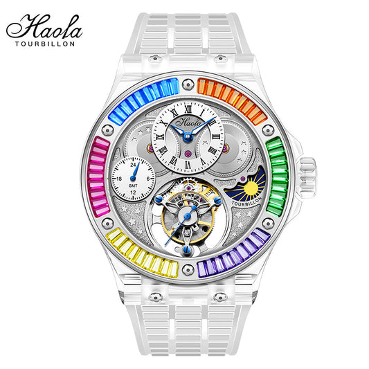 Haofa Crystal Case Skeleton Tourbillon GMT Watch 2101