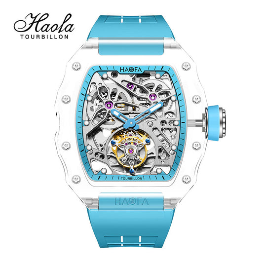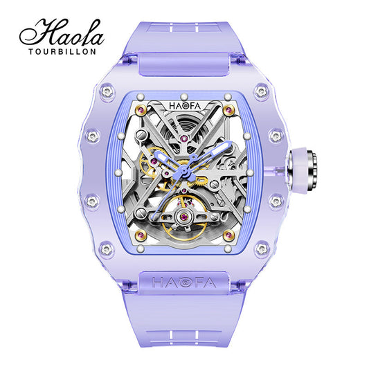 HAOFA High Hardness CRYSTAL CASE SKELETON Automatic TOURBILLON Double Barrel WATCH 2201