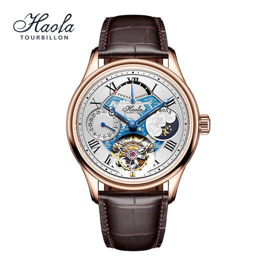 HAOFA GMT Luxury Tourbillon Mechanical Mens Watch Sapphire Moonphase 1036
