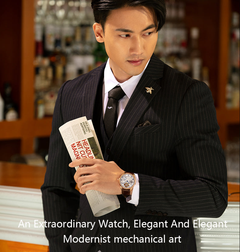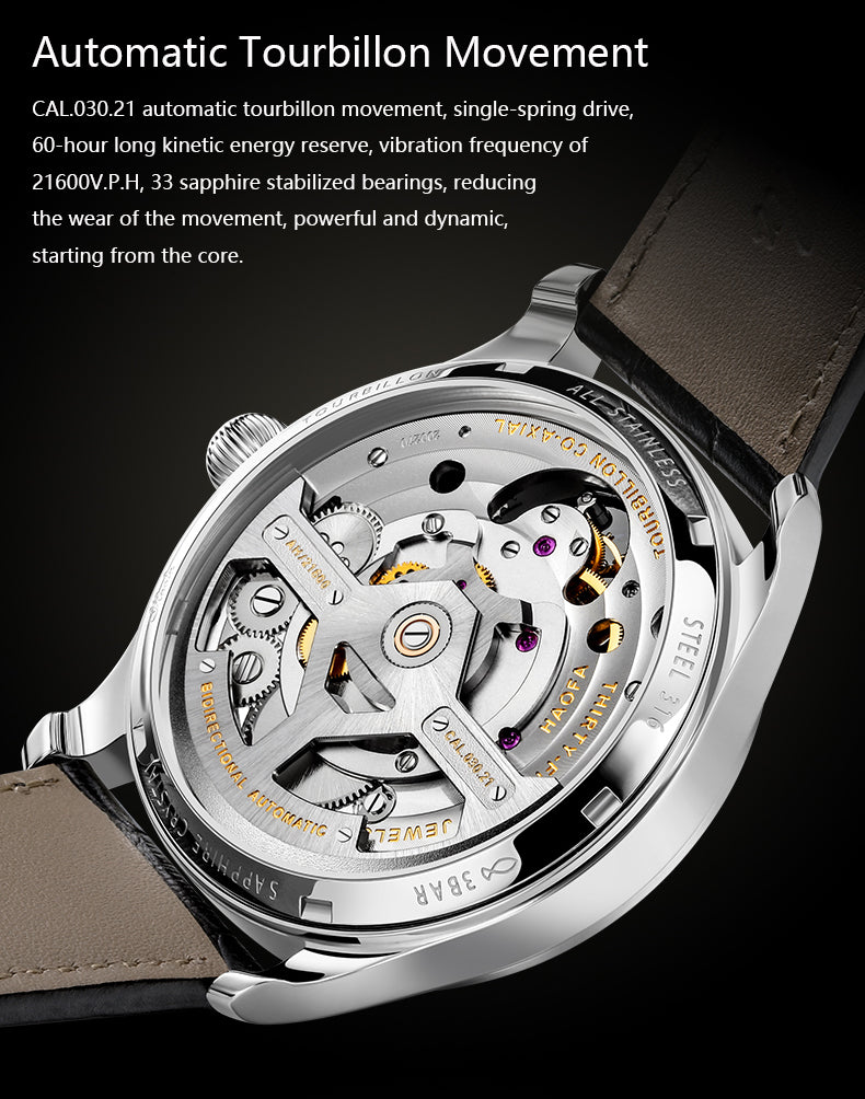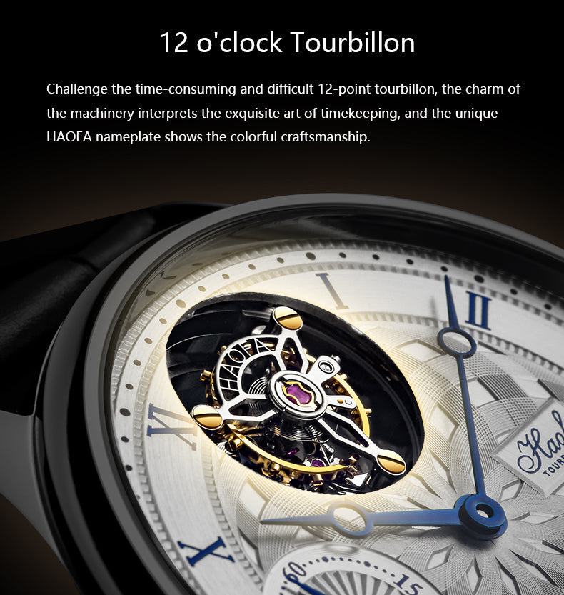 HAOFA 12'Clock Power Reserve Display Automatic Tourbillon Watch