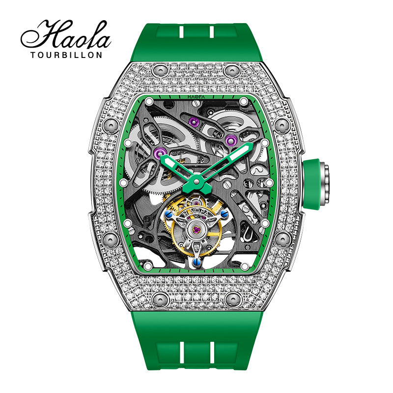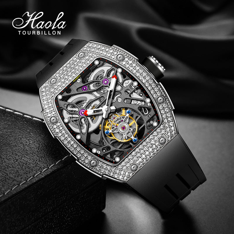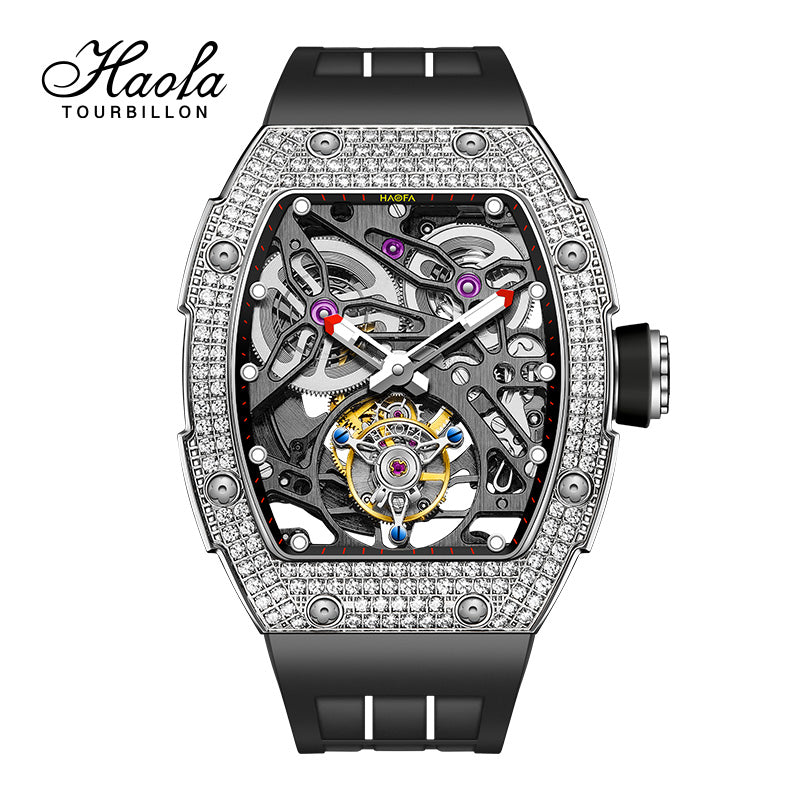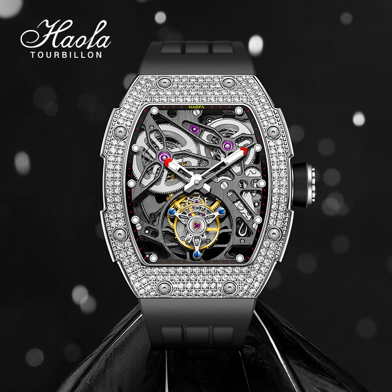 HAOFA 1901-1S Diamond Bezel Tourbillon Watch Double Spring 72-Hour Power Skeleton Automatic Watch