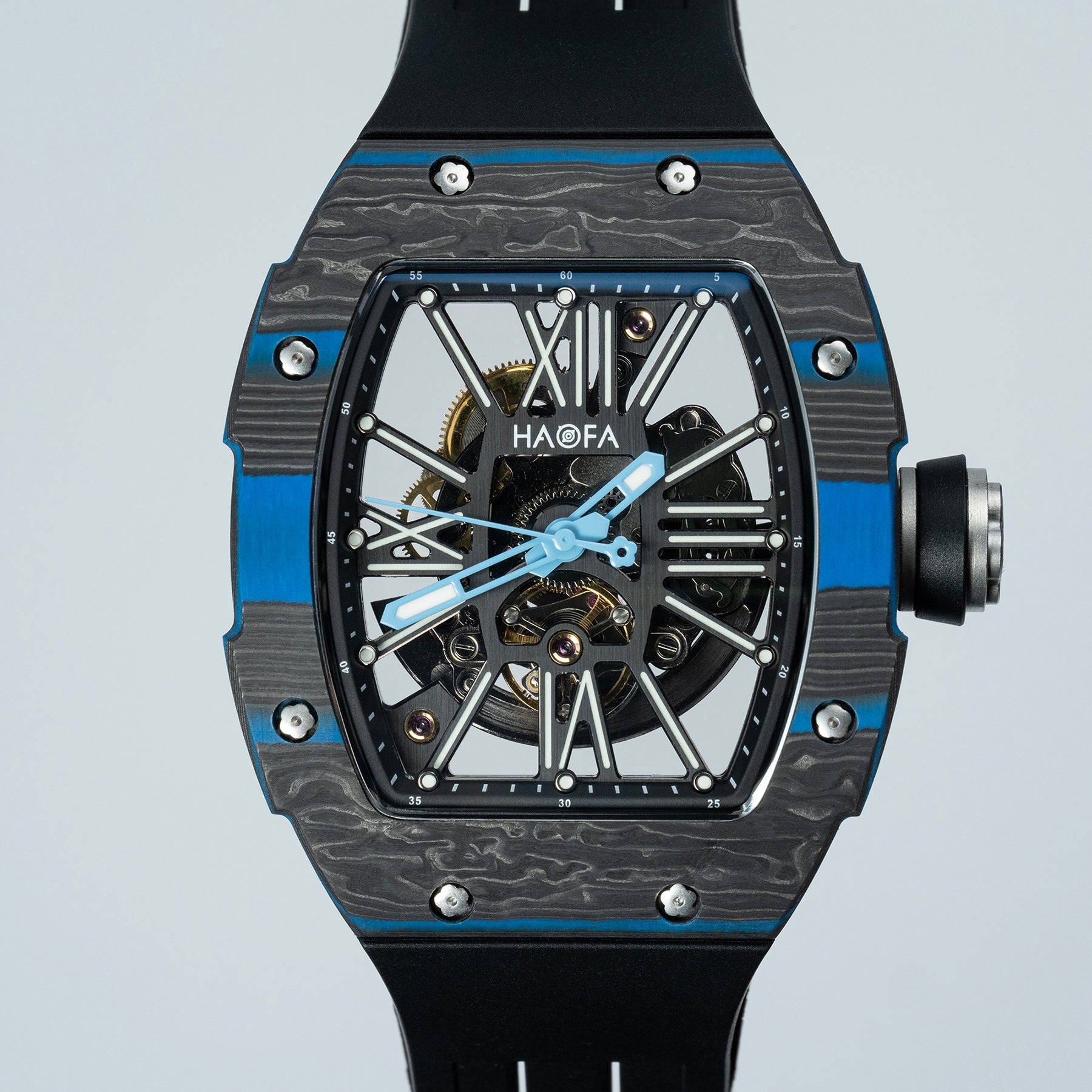 Haofa 1976 Carbon Fiber Bezel Skeleton Movement Watches for Men Luminous Automatic Mechanical Wristwatch