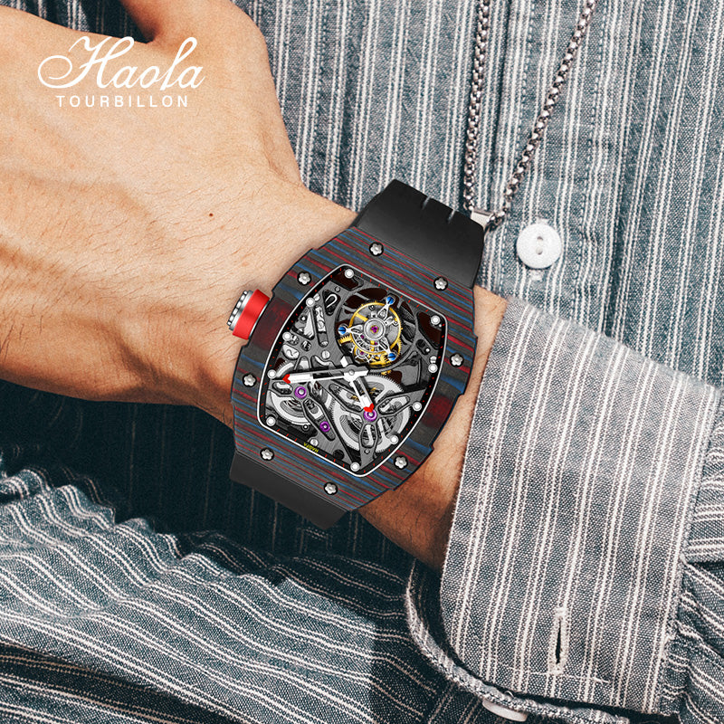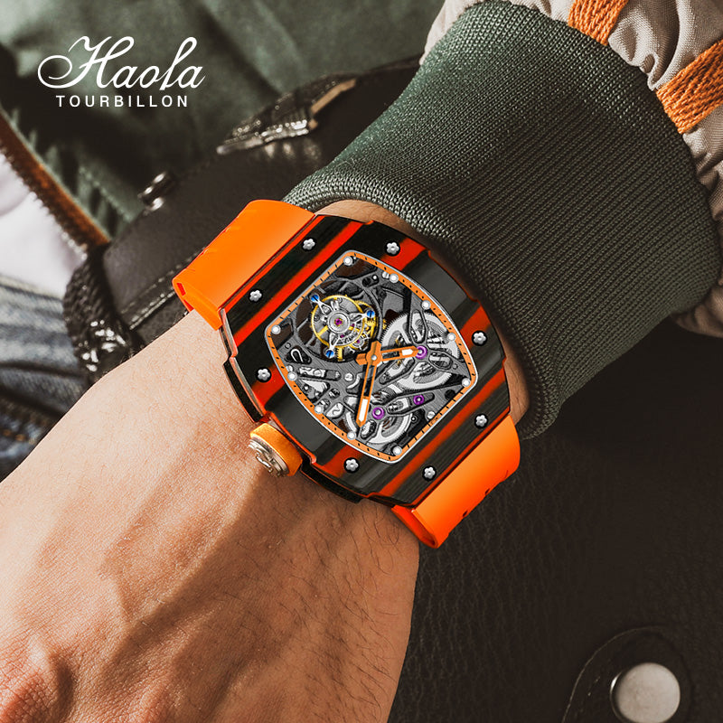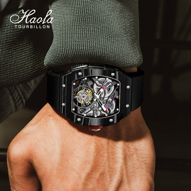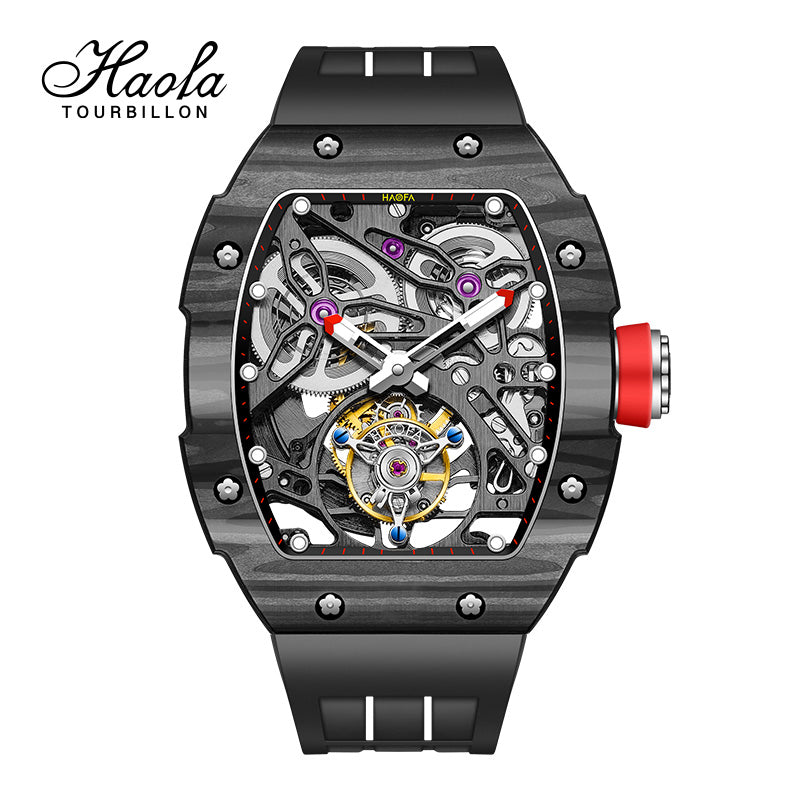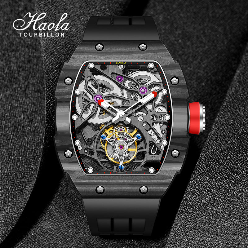 HAOFA Carbon Fiber Automatic Tourbillon Watch for Men Double Spring 1901-1 Skeleton