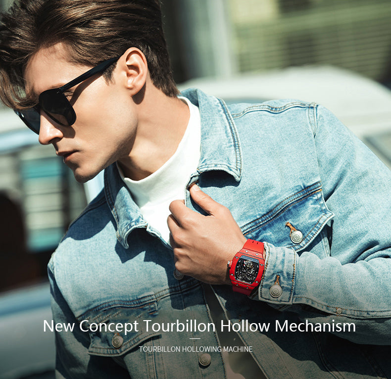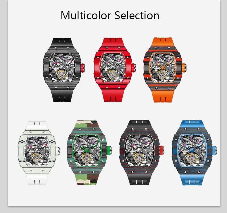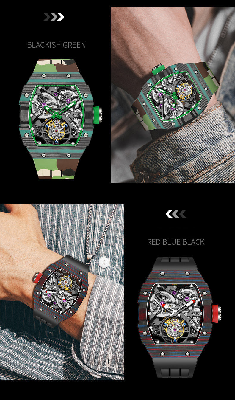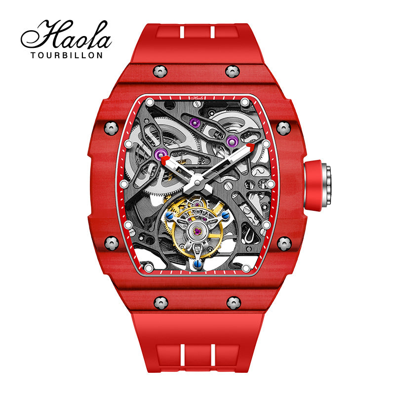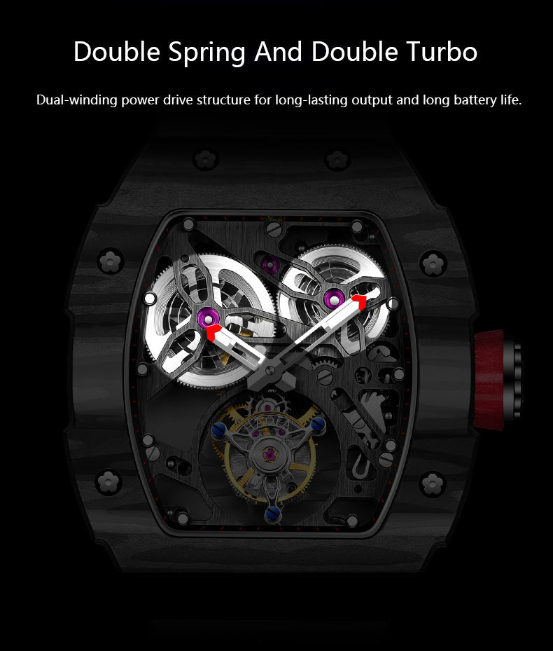 HAOFA Carbon Fiber Automatic Tourbillon Watch for Men Double Spring 1901-1 Skeleton