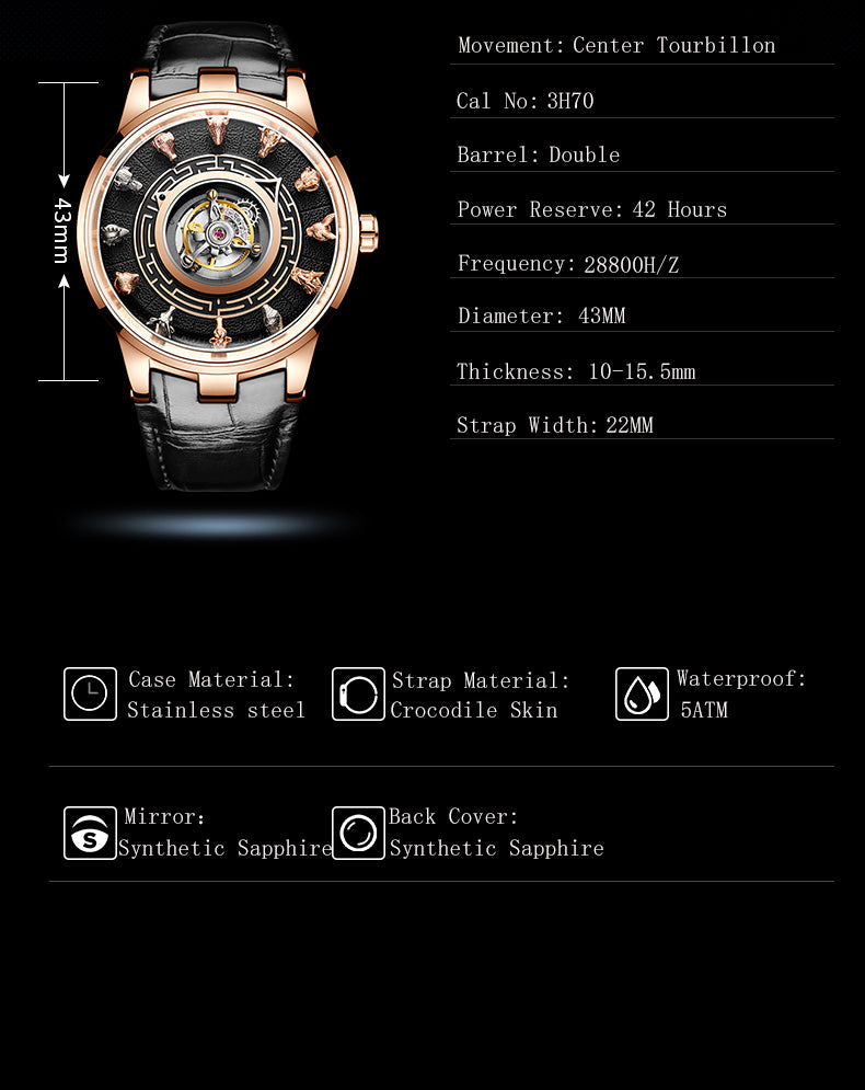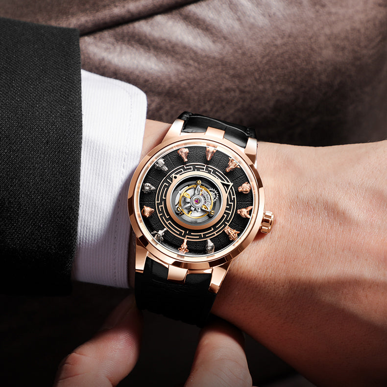 HAOFA Center Tourbillon 3D Zodiac signs Limited 500 pcs 3D Sapphire mirror Purple Sandalwood seal Purple Sandalwood Gift Box
