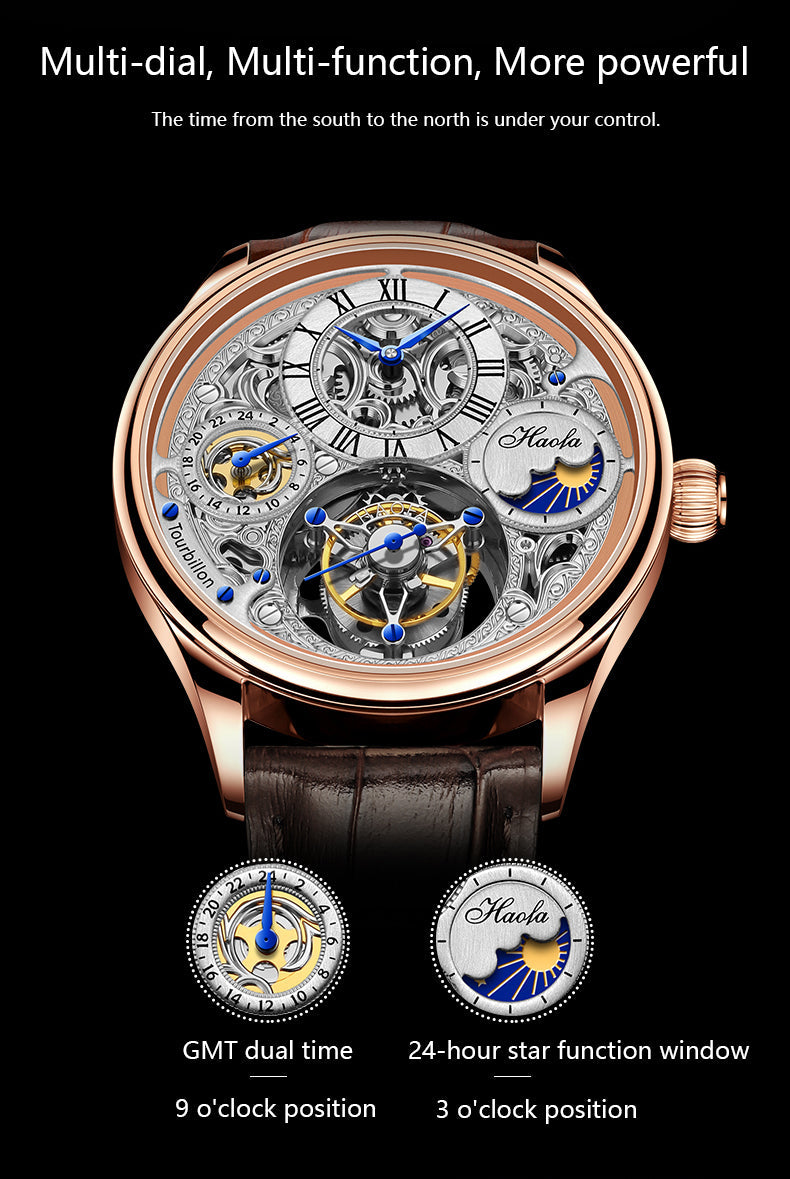 Haofa GMT Day And Night Tourbillon Movement Watch 1035 Top Finish Case