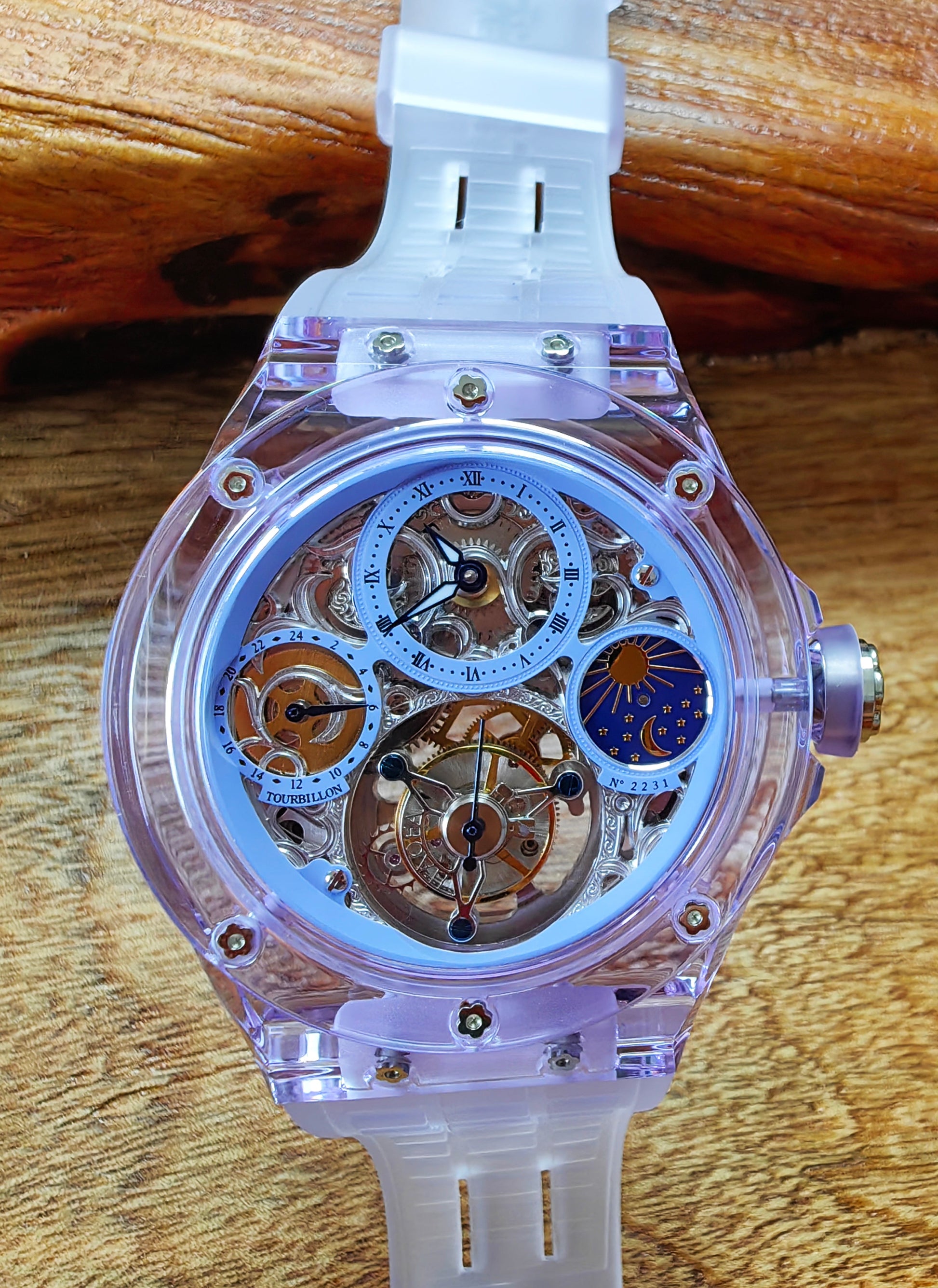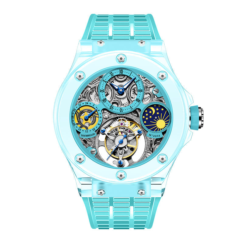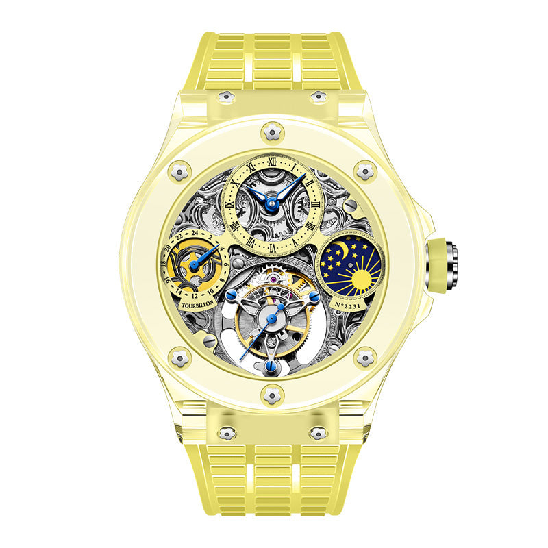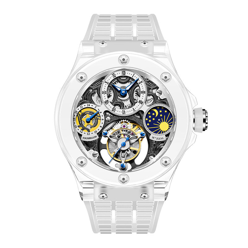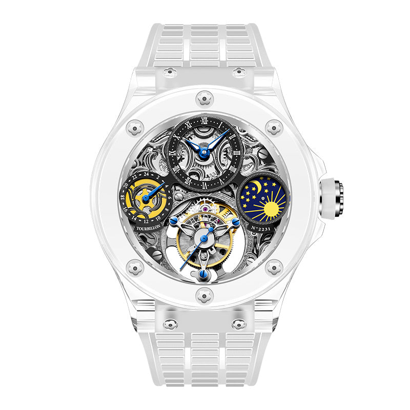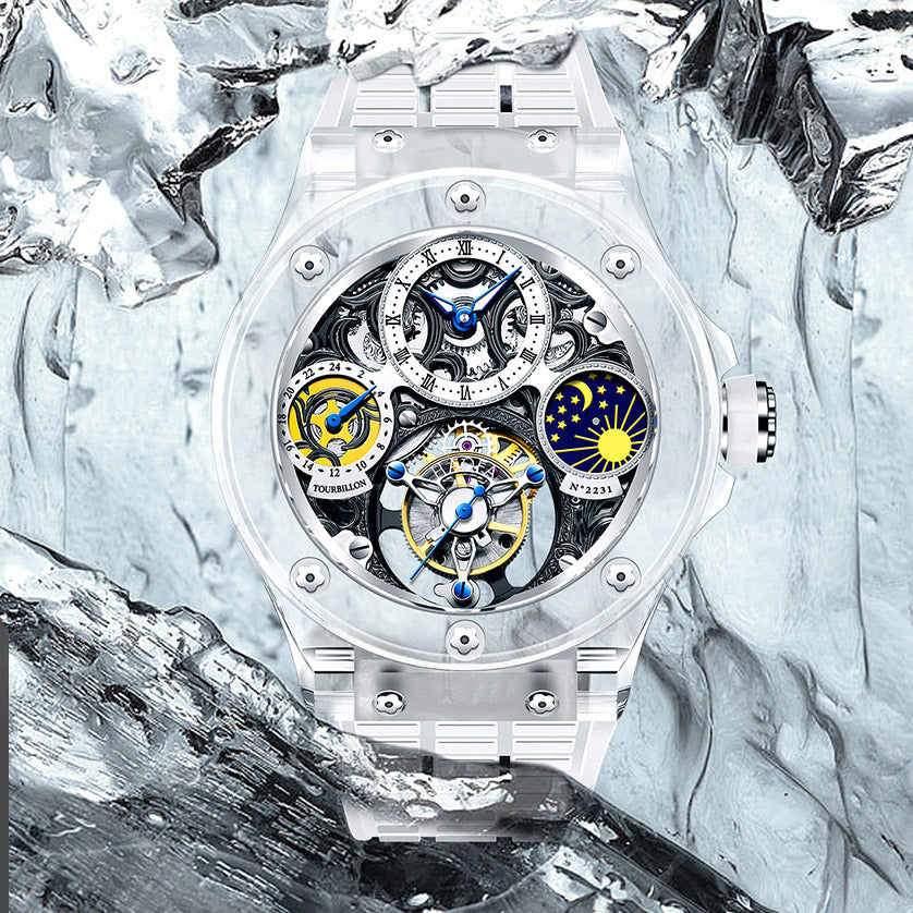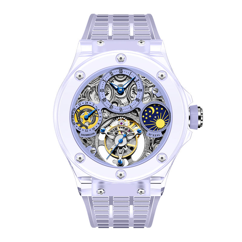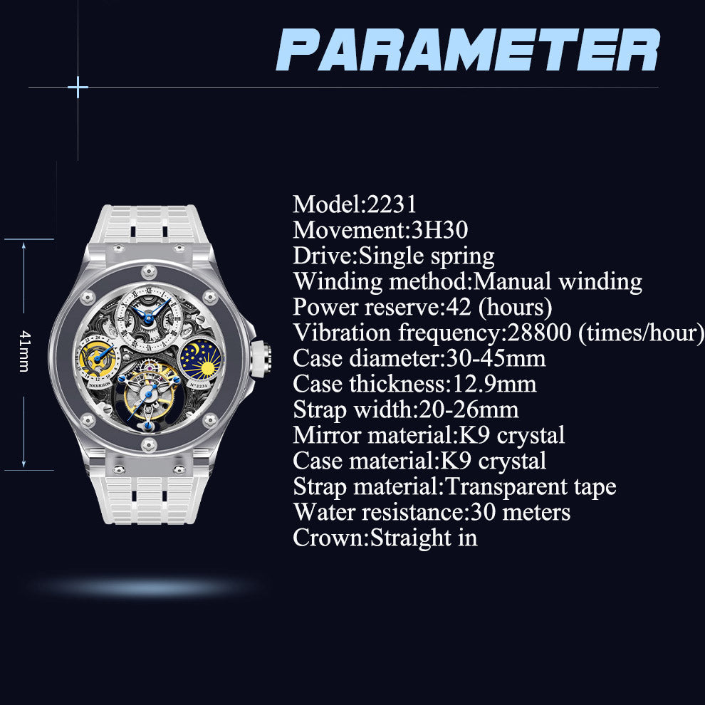 Haofa K9 Crystal Case Skeleton Tourbillon GMT Watch 2231