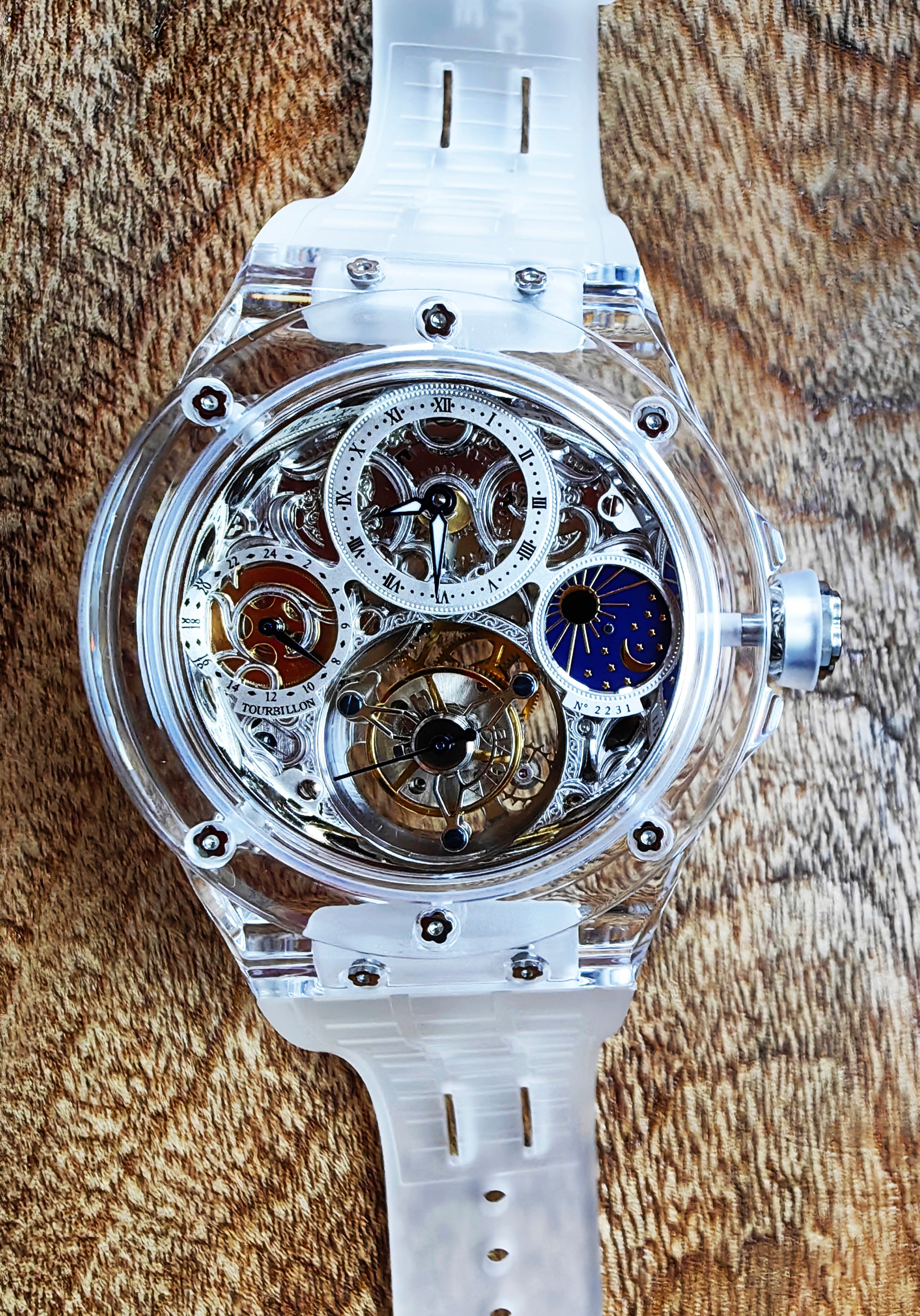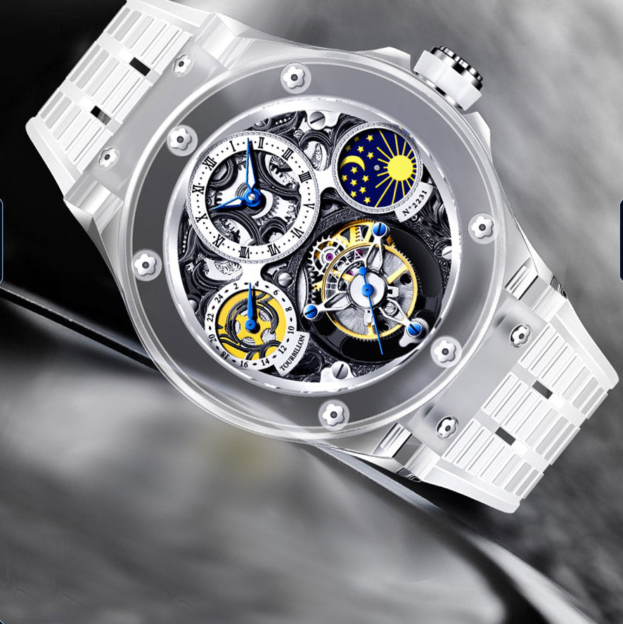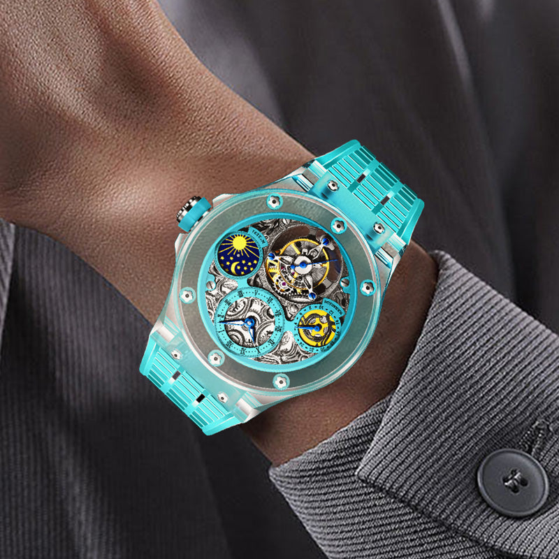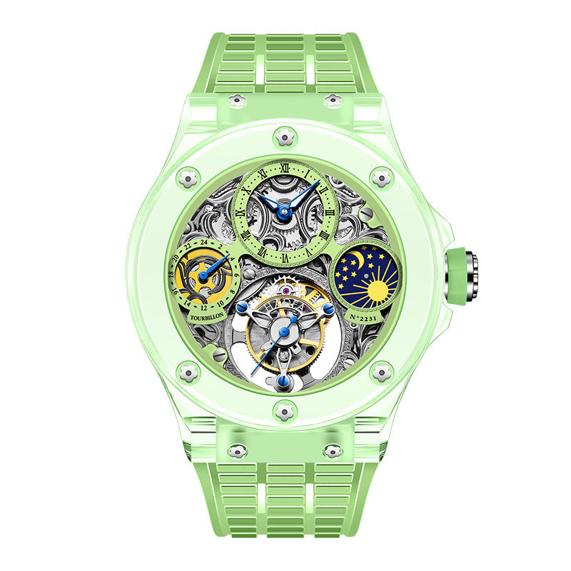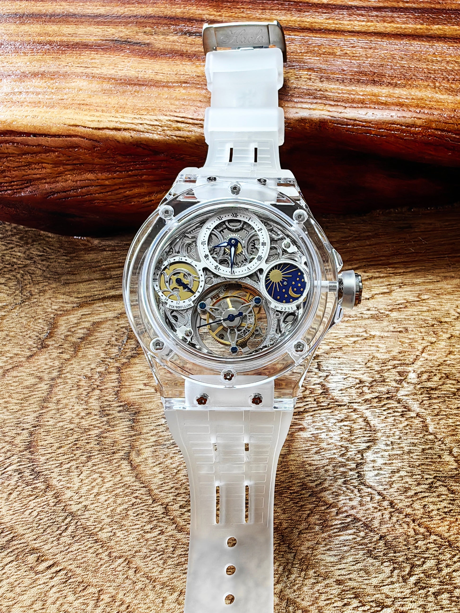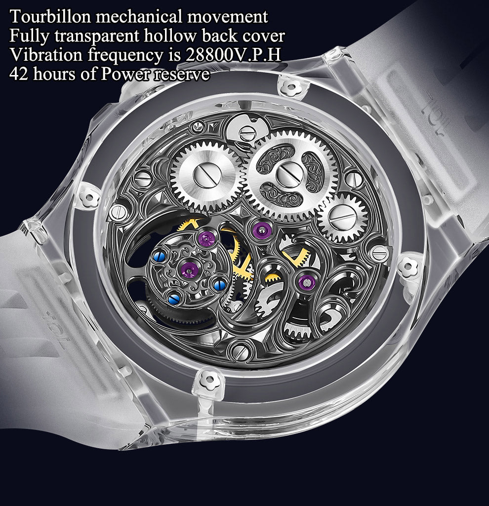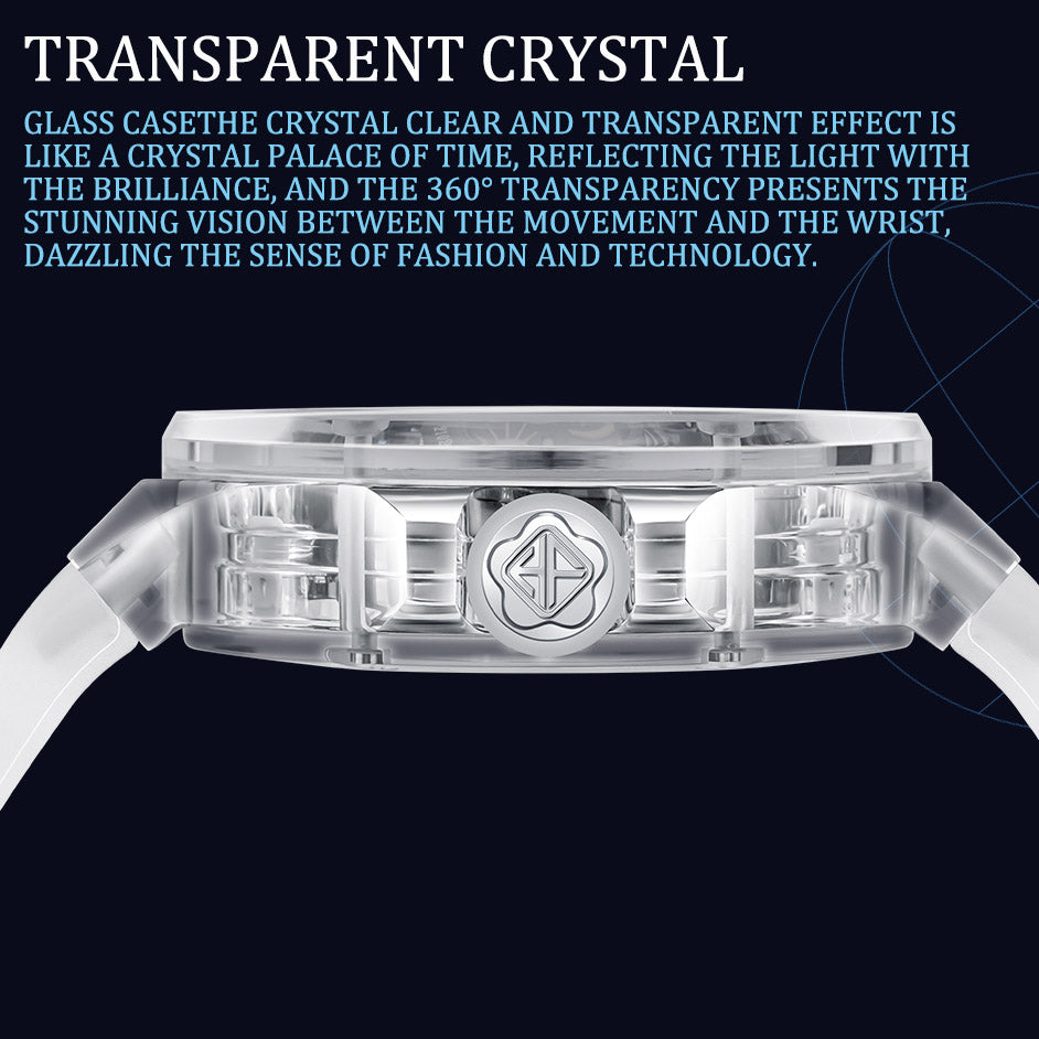 Haofa K9 Crystal Case Skeleton Tourbillon GMT Watch 2231
