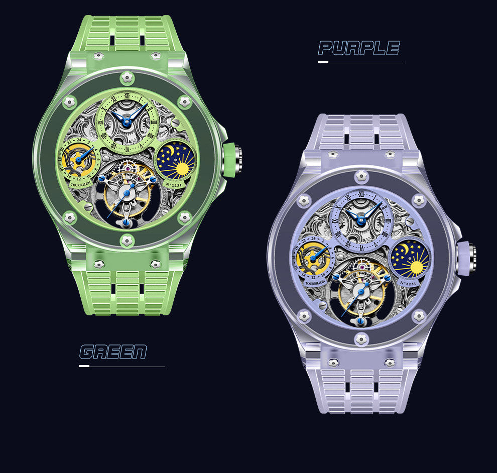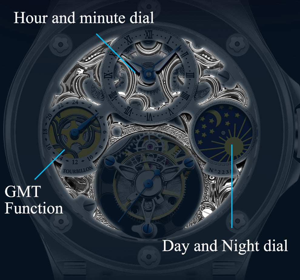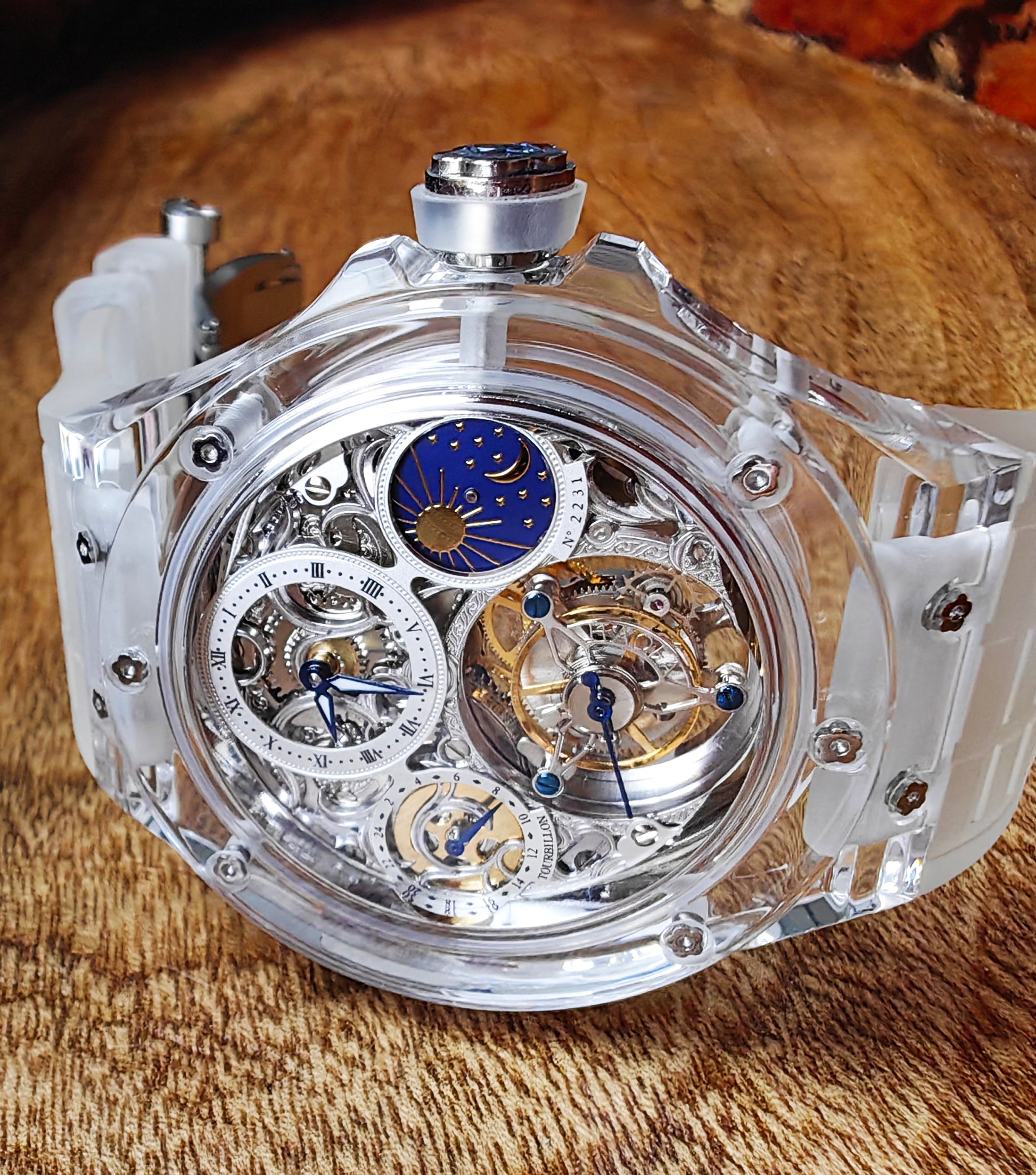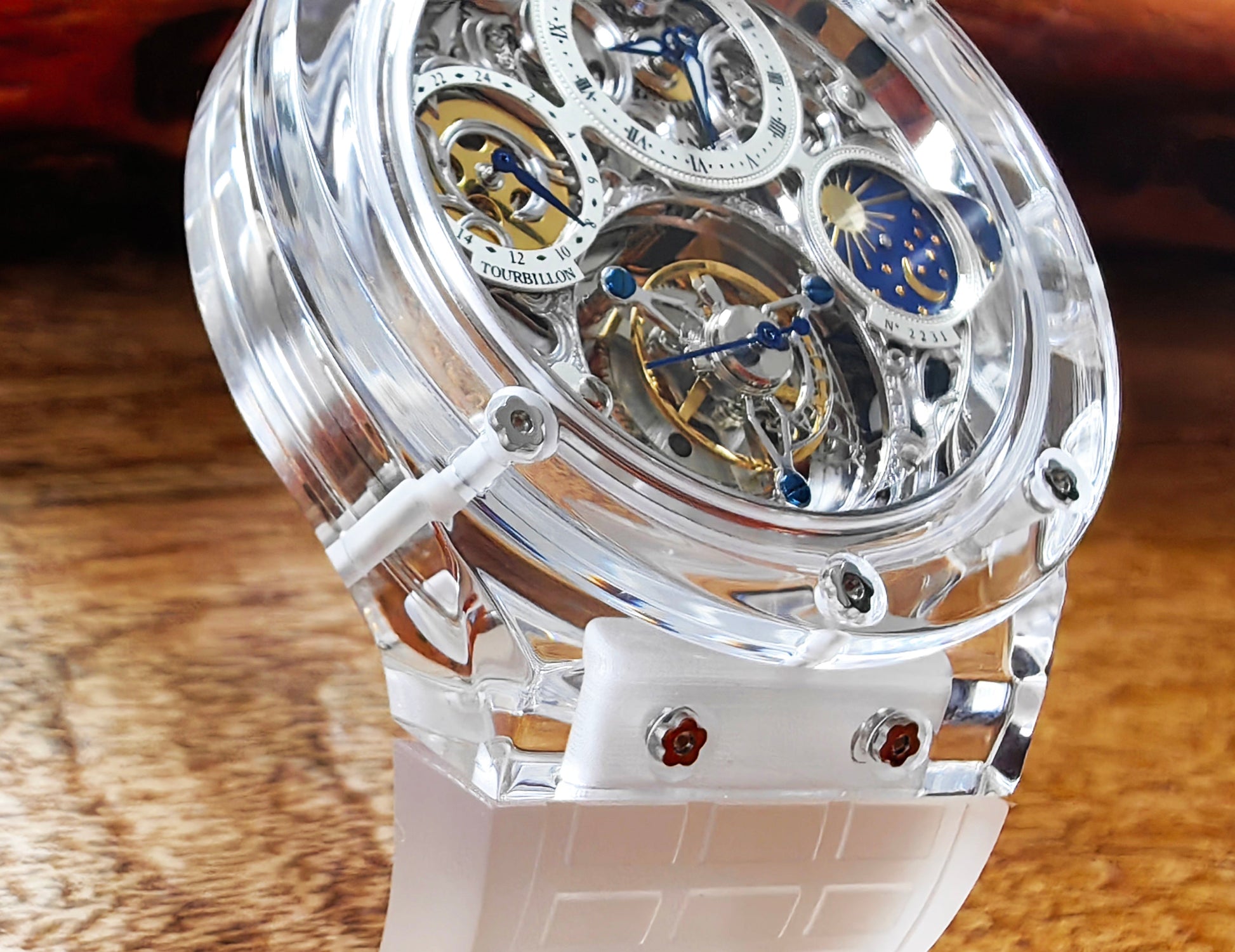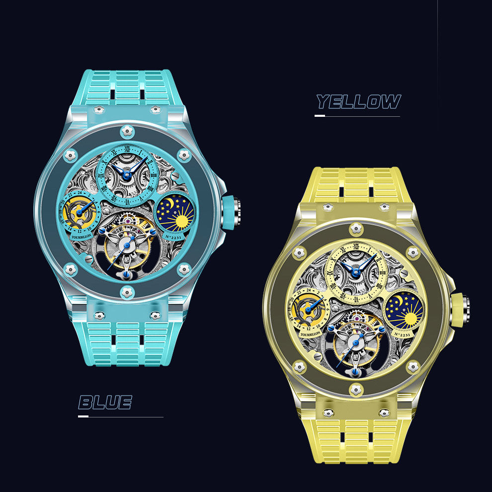 Haofa K9 Crystal Case Skeleton Tourbillon GMT Watch 2231