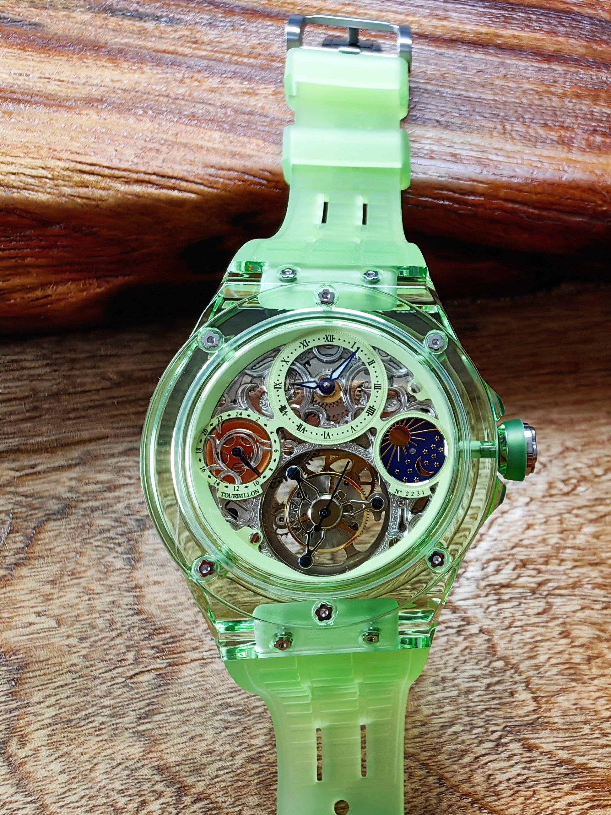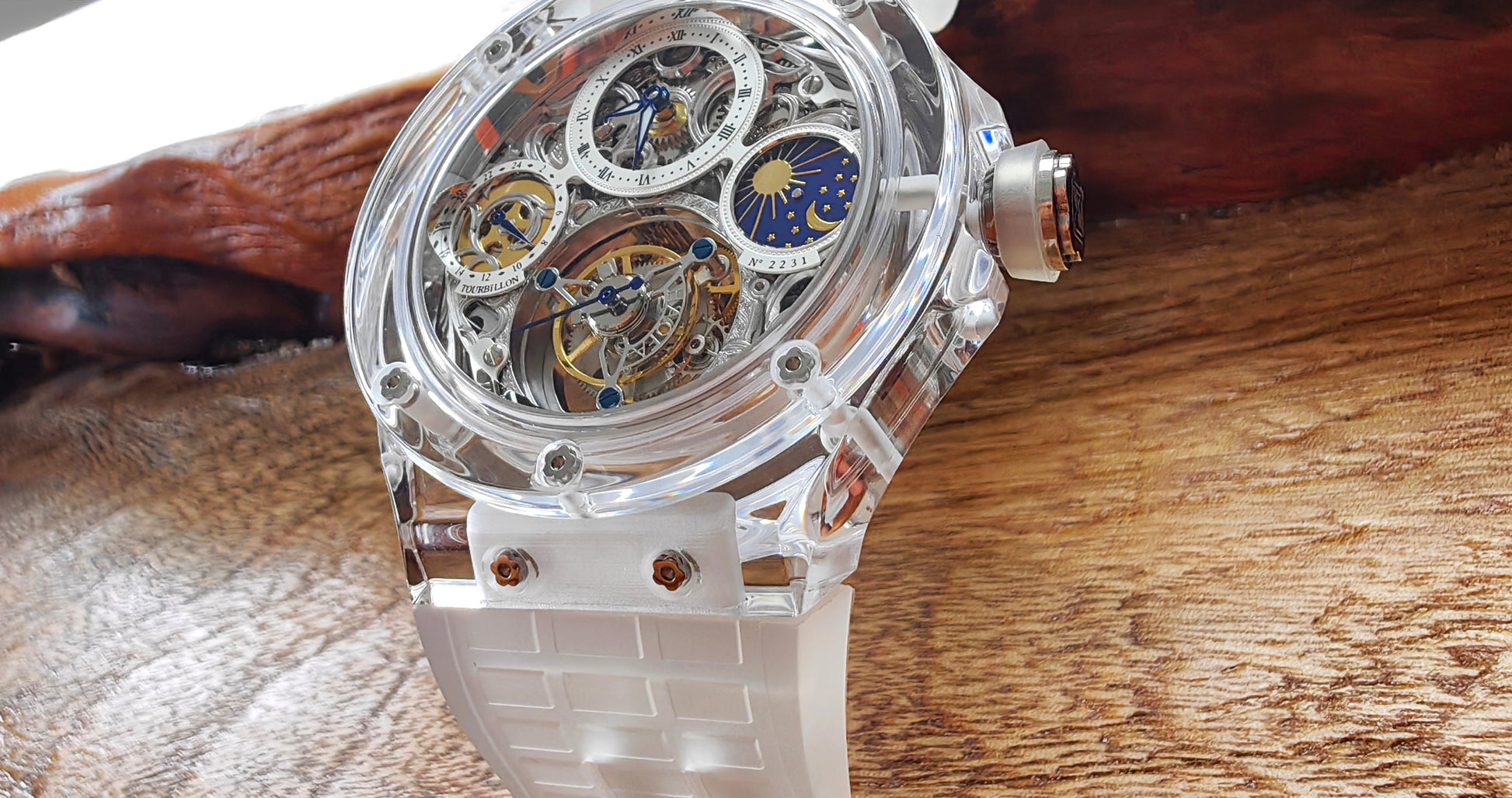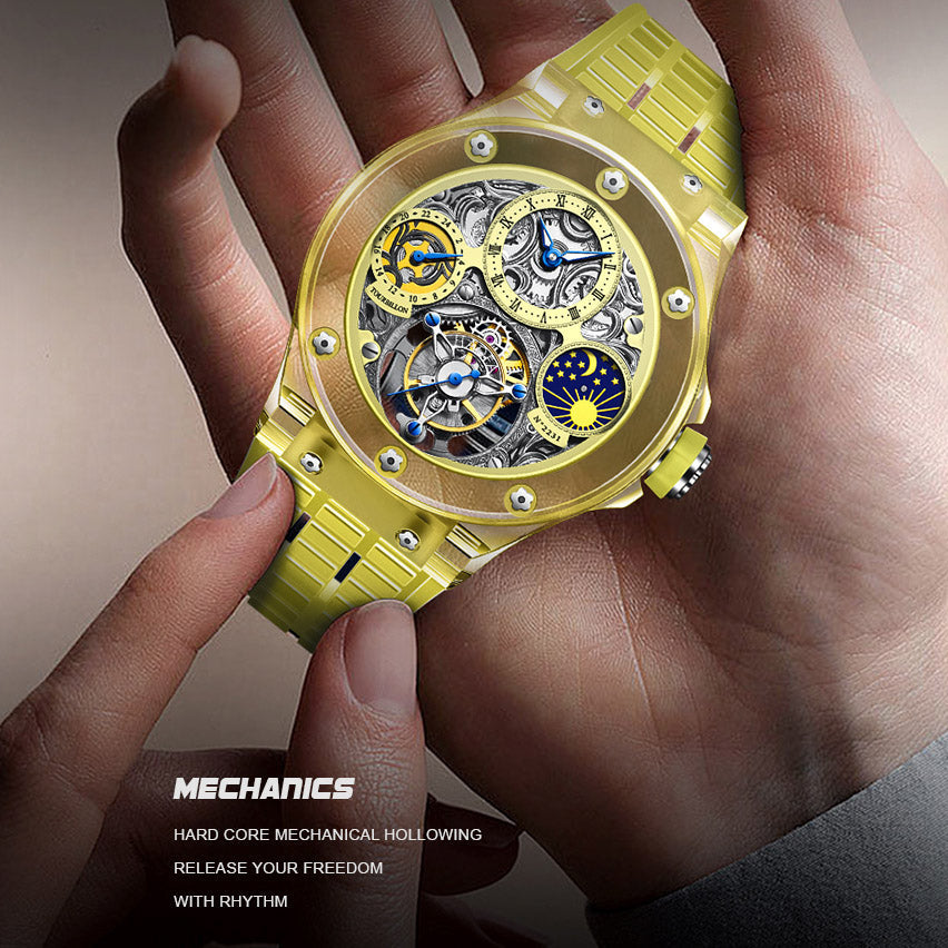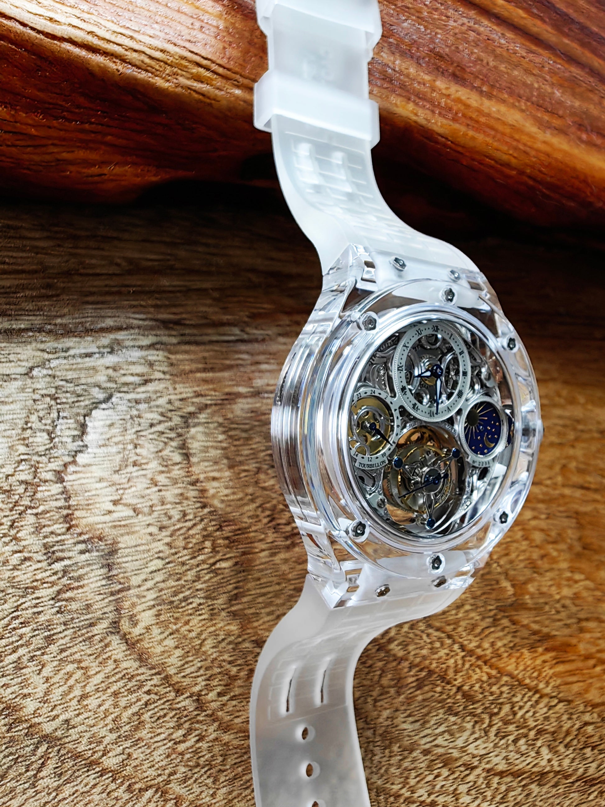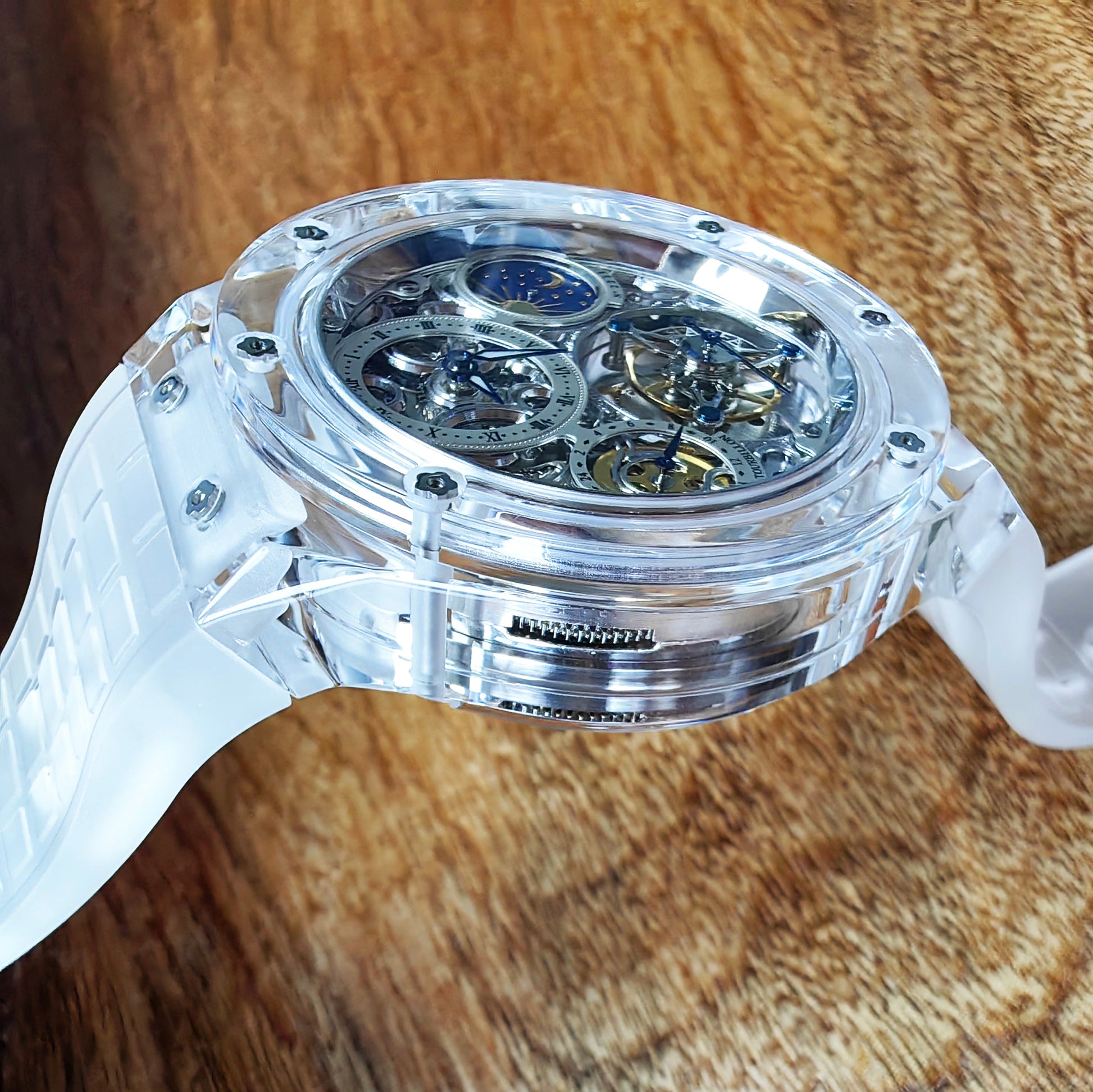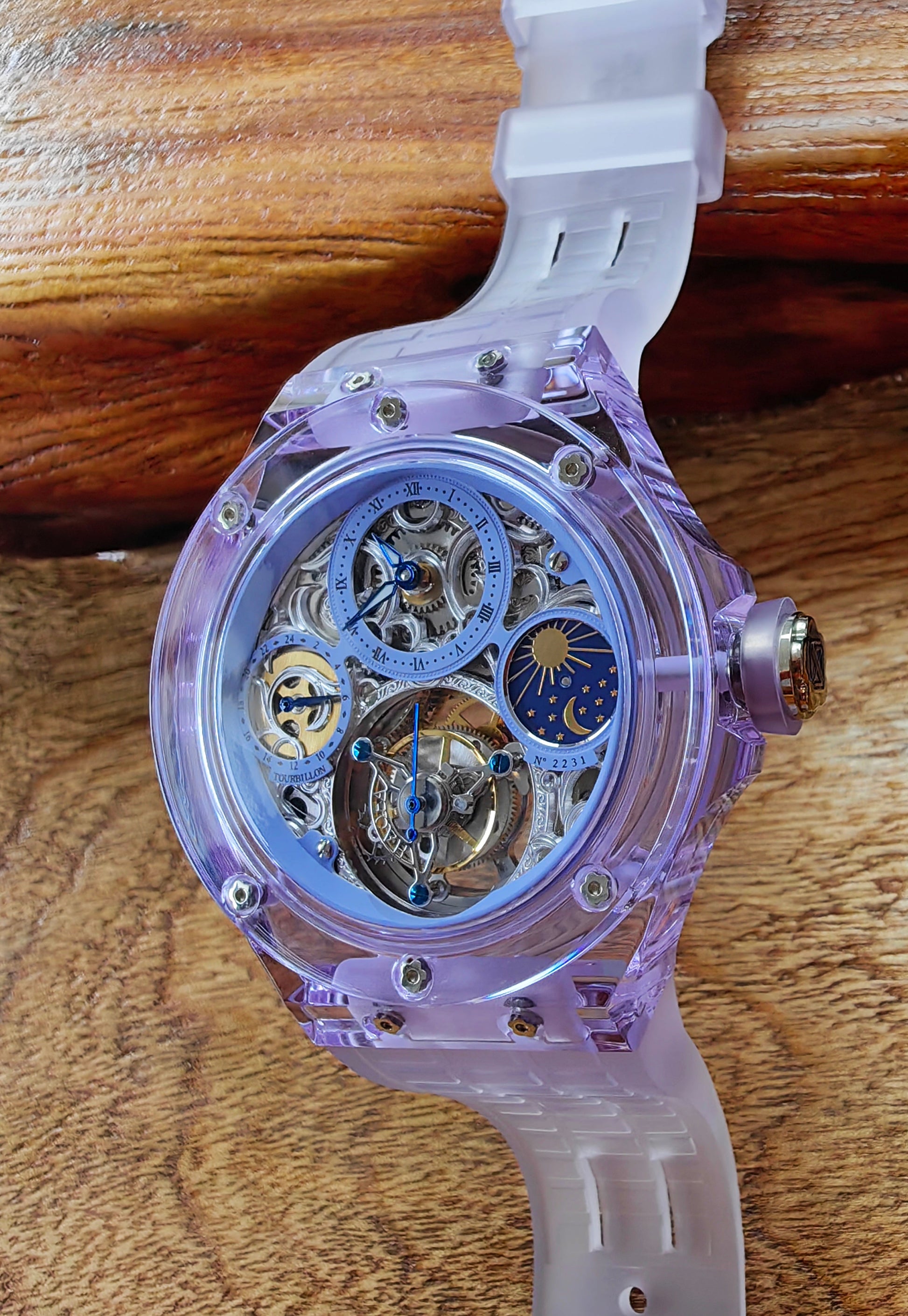 Haofa K9 Crystal Case Skeleton Tourbillon GMT Watch 2231