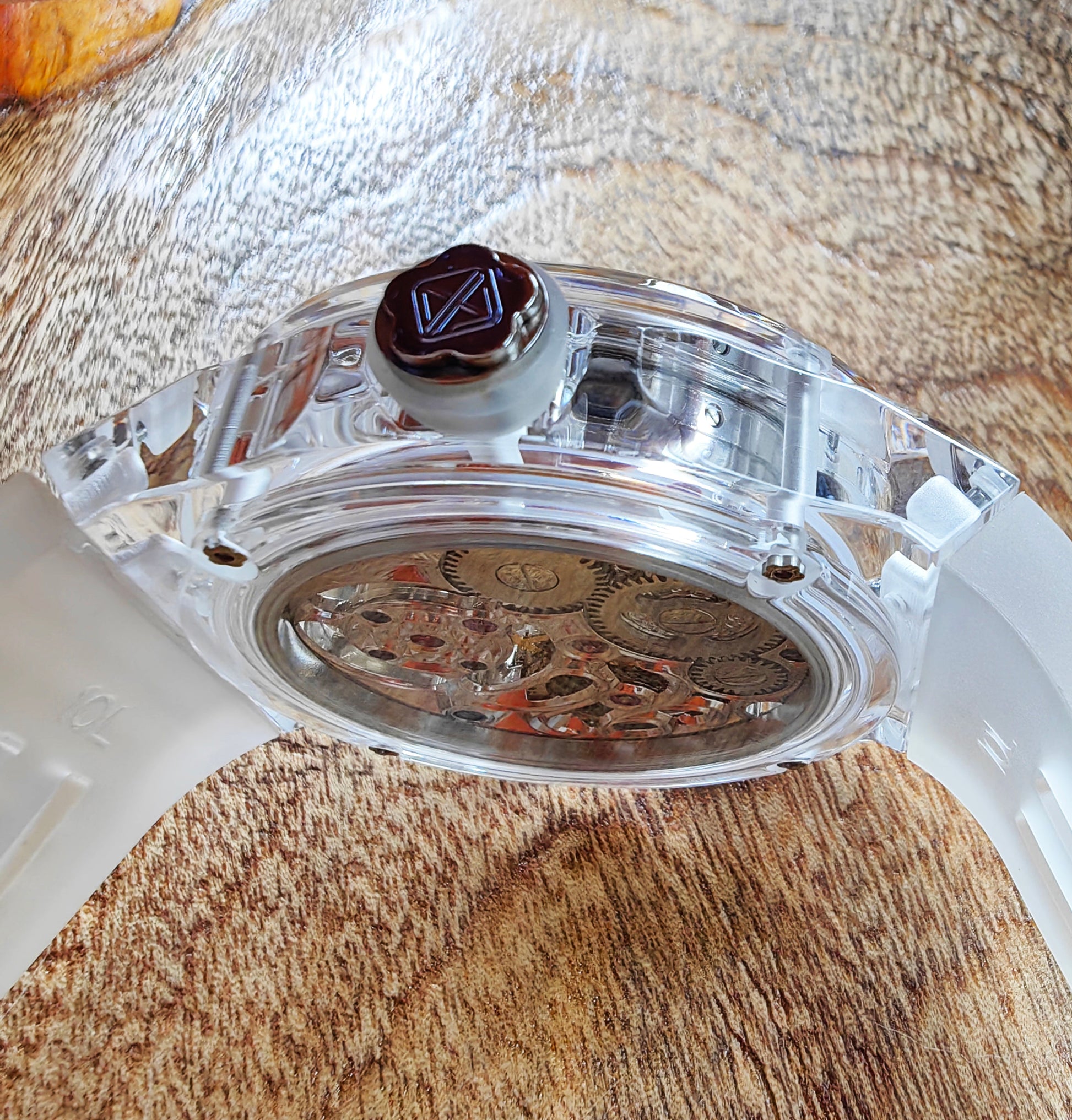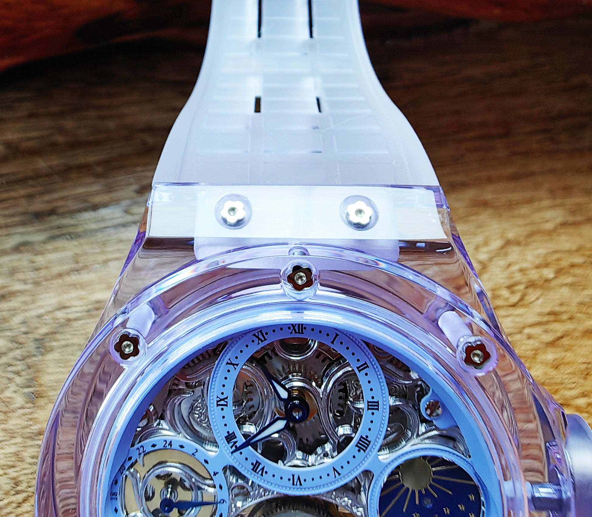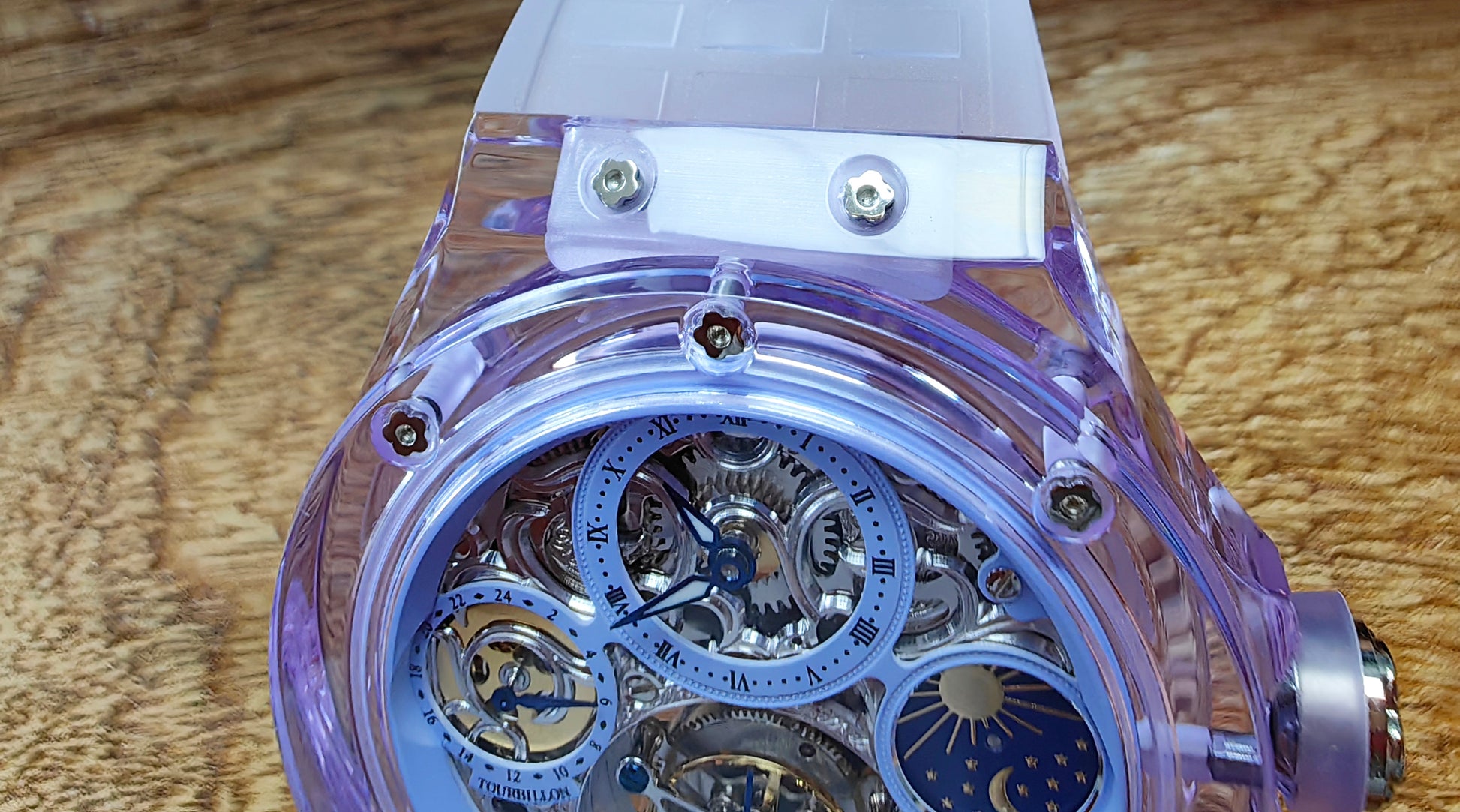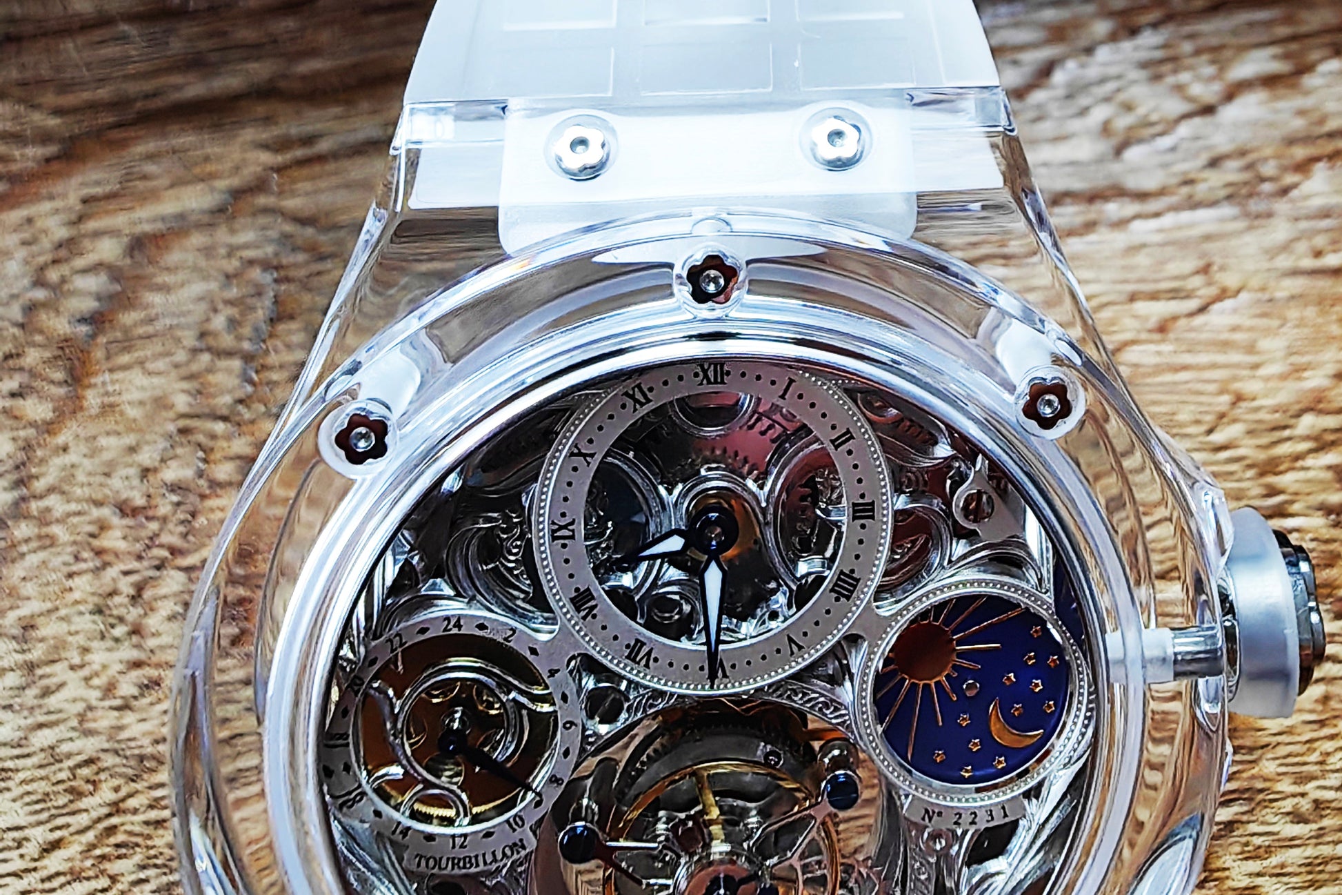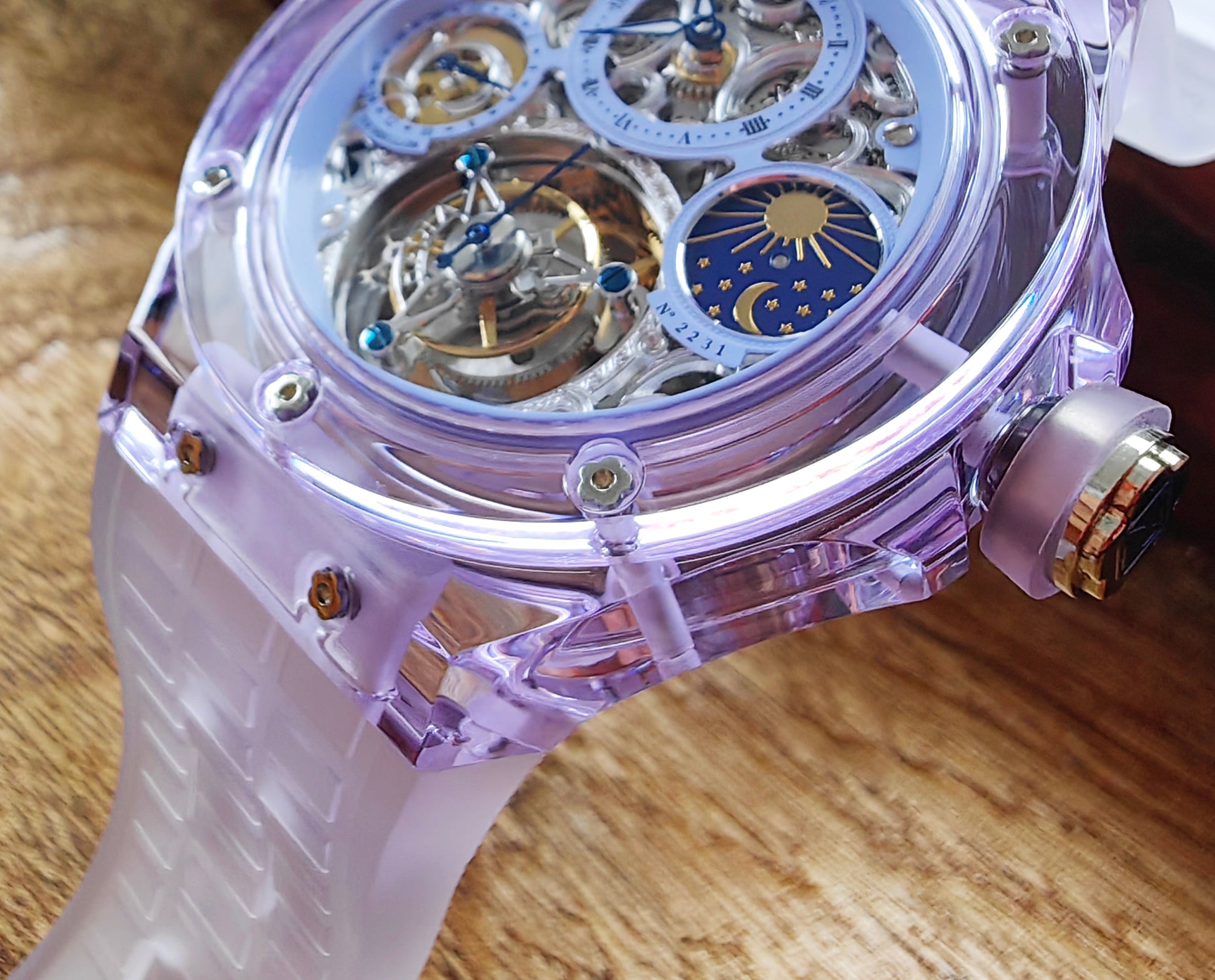 Haofa K9 Crystal Case Skeleton Tourbillon GMT Watch 2231