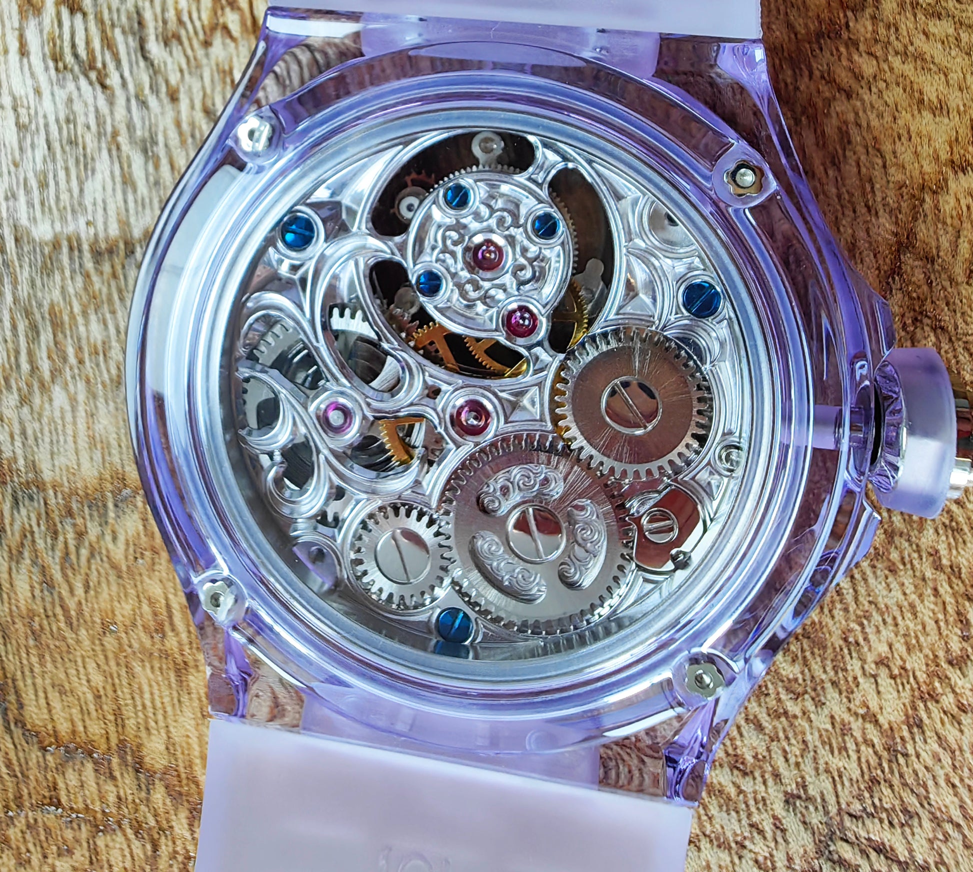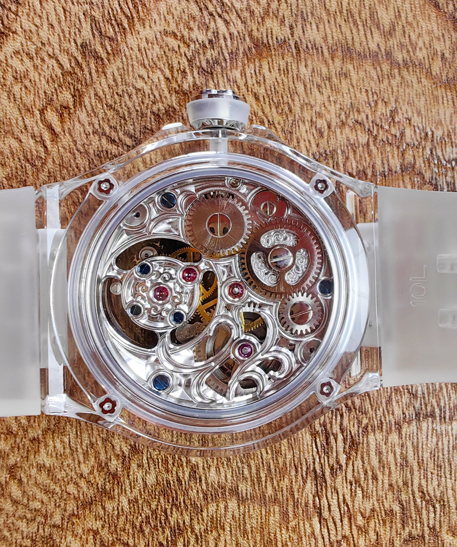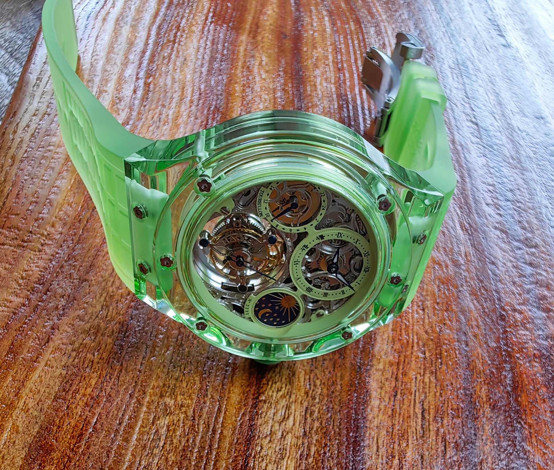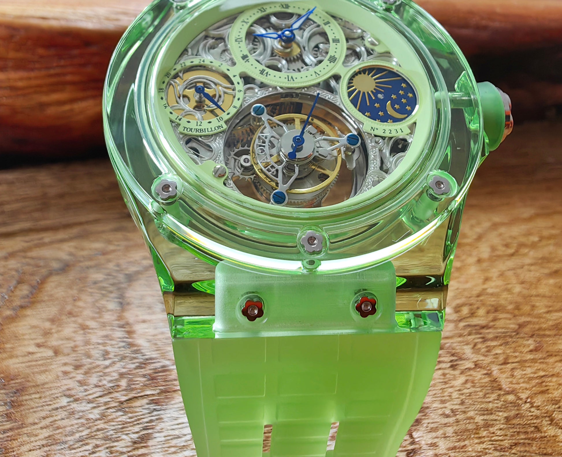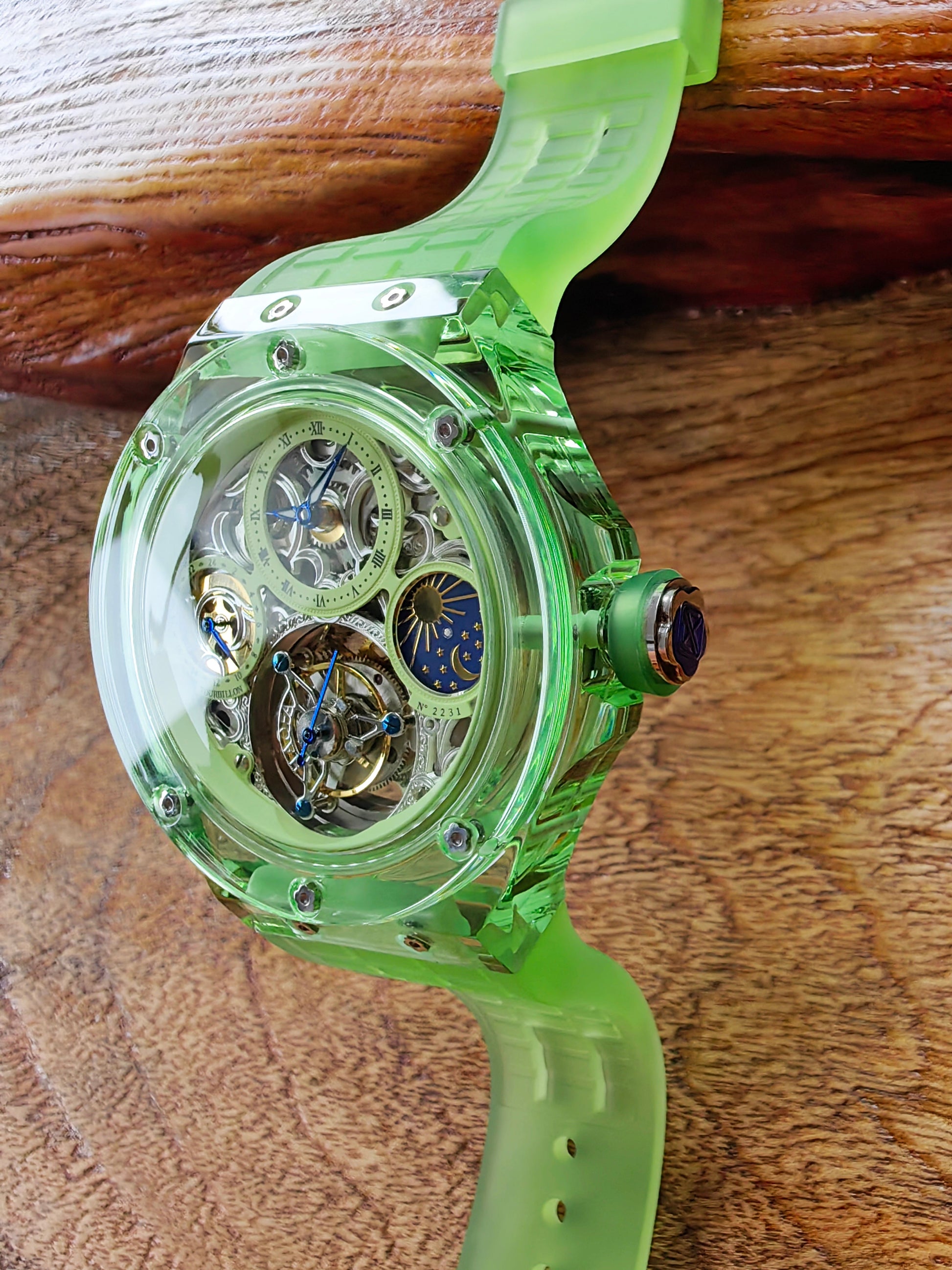 Haofa K9 Crystal Case Skeleton Tourbillon GMT Watch 2231