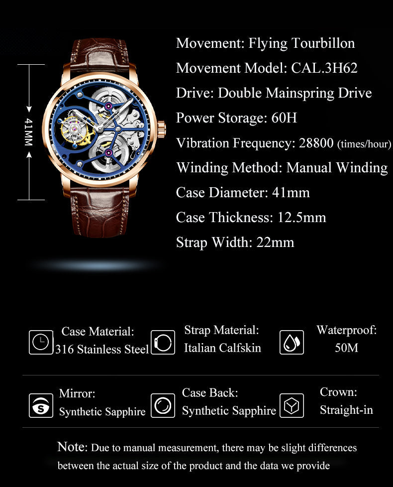 HAOFA Sapphire Middle Case Double Barrel Tourbillon Watch 1945