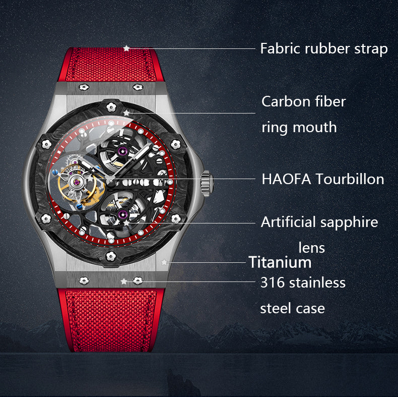 Haofa Tourbillon 1918 Carbon Fiber Bezel Titanium Alloy Case