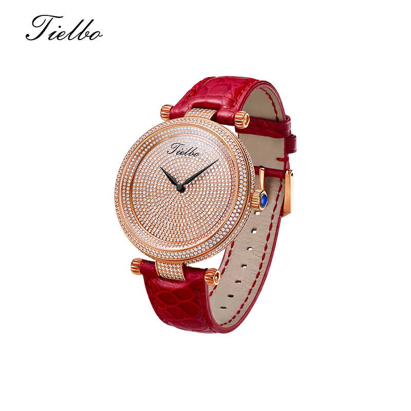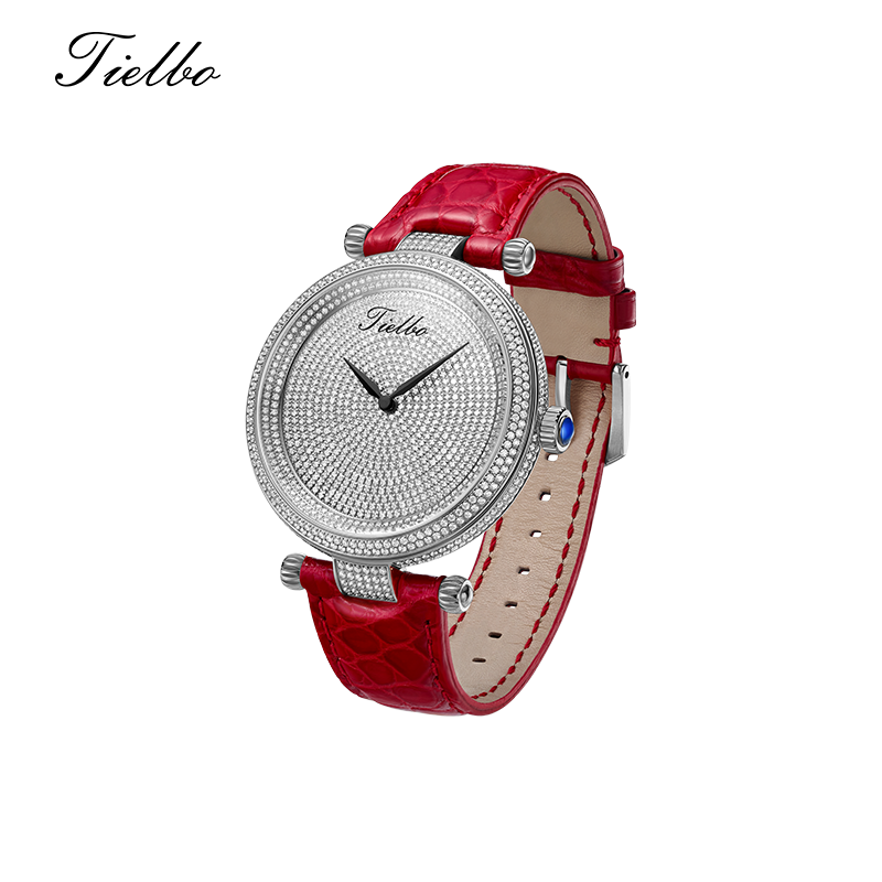 TIELBO Gypsophila Women's Watch Quartz Movement Diamond Dial Sapphire Wristwatch TC128L